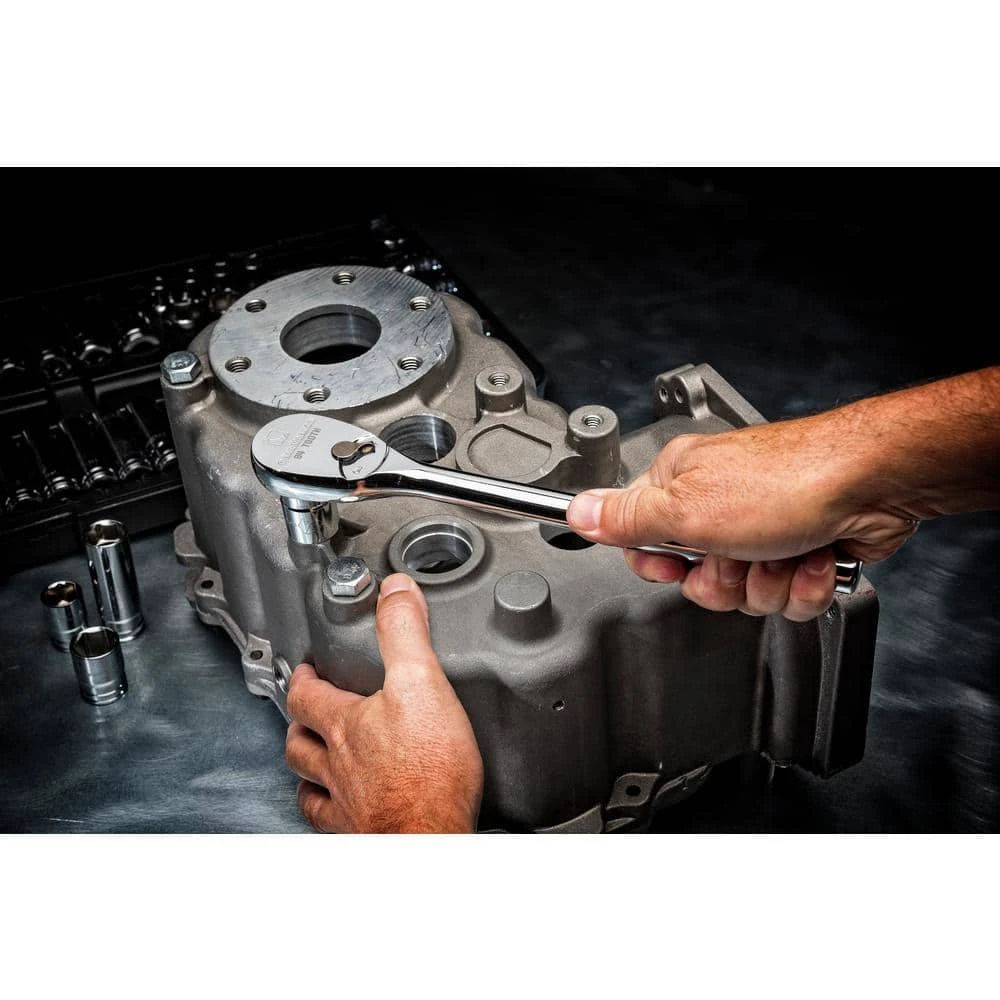 - Ratchet features teardrop low profile head, with flush mounted on/off switch for better access in tight places
