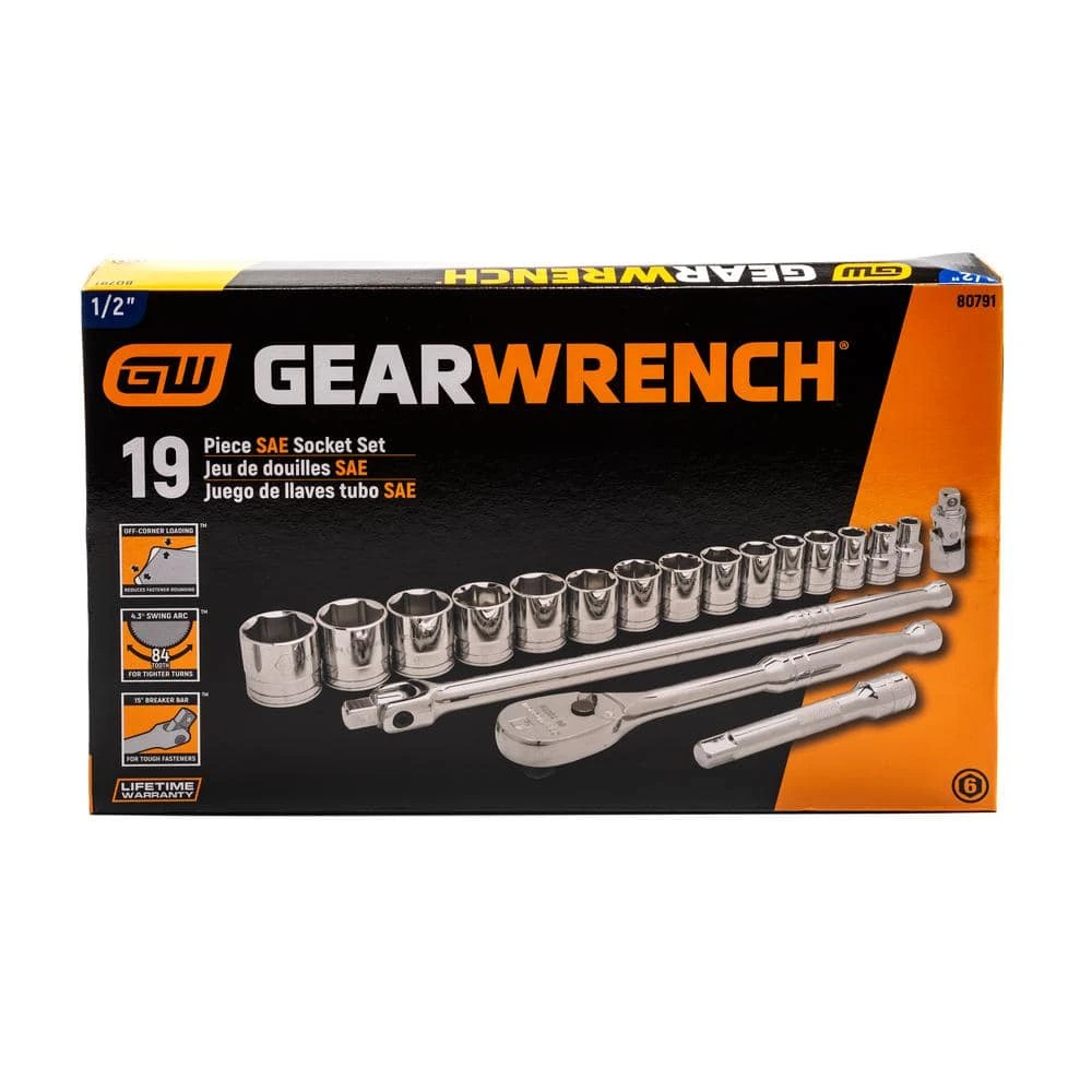 The 19-Piece 1/2 in. Drive SAE Socket Set is made of chrome vanadium steel for strength. The large size markings are for easy readability. The serration depth is as deep as the fastener.