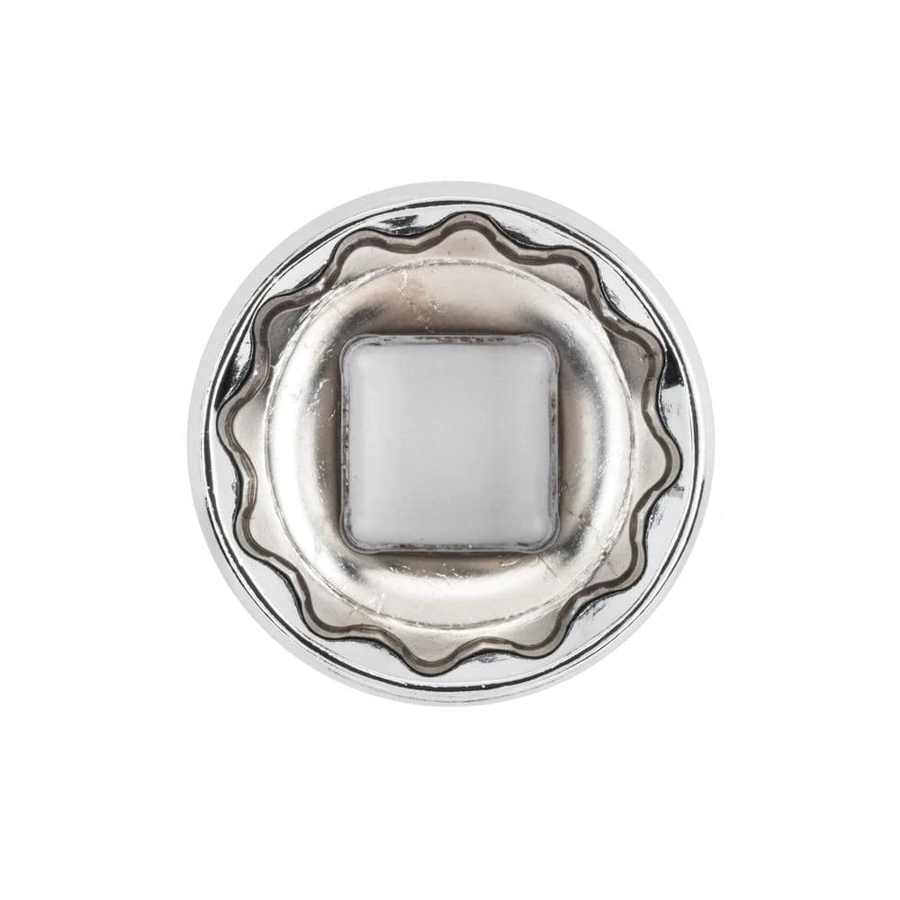 GEARWRENCH 1/2 in. Drive, 12-Point Socket, 1-1/16 in. Entry angle on wall of socket guides fastener to be firmly seated. Serration depth is as deep as the fastener. Tempered alloy steel provides high strength. Nickel chrome high polish finish provides for long corrosion resistant tool life. Large hard stamped identification makes it easy to find desired size.
