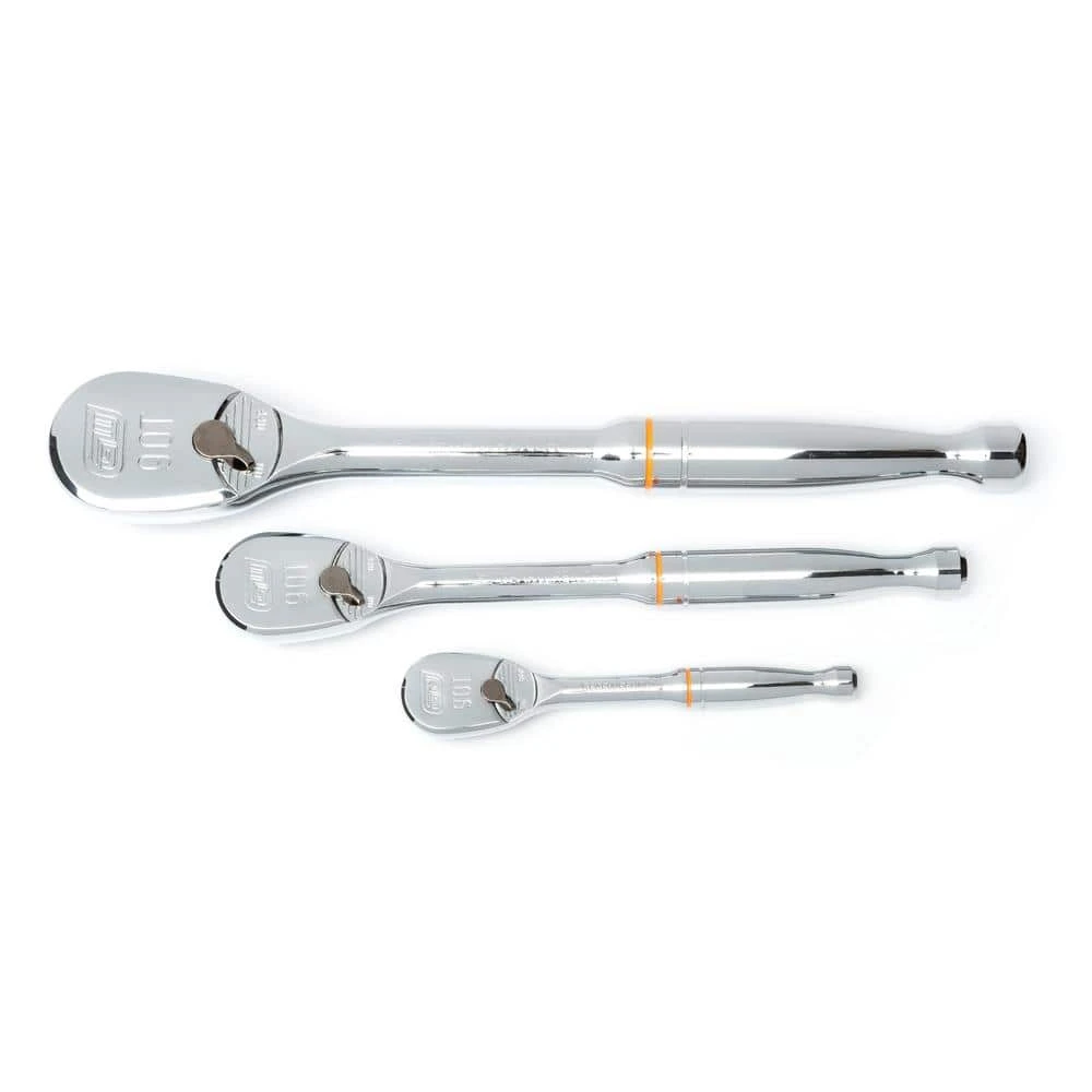The GEARWRENCH 90-tooth ratchets have a 4° swing arc and low-profile head for easier access to hard-to-turn fasteners. The 90-tooth design exceeds ASME torque performance requirements, delivering 1 of the strongest ratchets on the market. GEARWRENCH ratchets help you GET IT DONE.