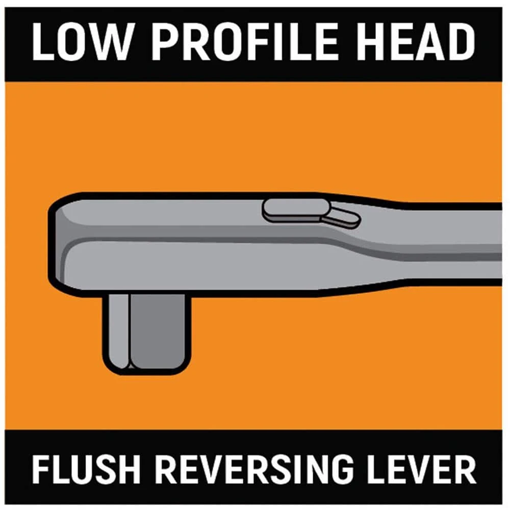 - Thin head allows the ratchet to snap on fasteners in hard to reach places and the tightest areas
