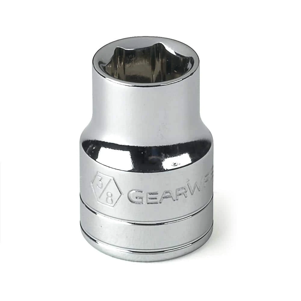 - 3/8″ Drive 12 Pt. Standard Sockets – 3/8″, 7/16″, 1/2″, 9/16″, 5/8″, 11/16″, 3/4″, 13/16″, 9mm, 10mm, 11mm, 12mm, 13mm, 14mm, 15mm, 15mm, 16mm, 17mm, 18mm, 19mm
