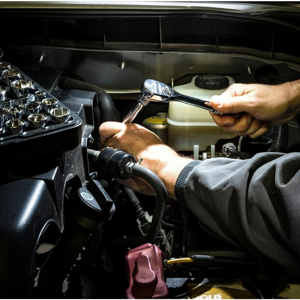 GEARWRENCH is a premier mechanics hand tool brand, offering products that are designed to meet the tough requirements of Professional Mechanics and Automotive Enthusiast. This 579-piece Master Mechanic Tool Set is a staple for every tool box and features popular socket sizes for a variety of jobs. Having the right tool for the job is critical and technicians working in cramped spaces understand better than anyone the power of this simple statement. This wide range is the backbone that gives GEARWRENCH its reputation for unprecedented speed, strength and access. The result is increased productivity for those who keep GEARWRENCH tools in their box.