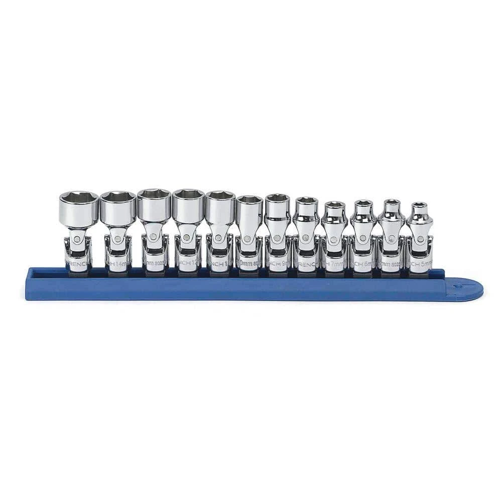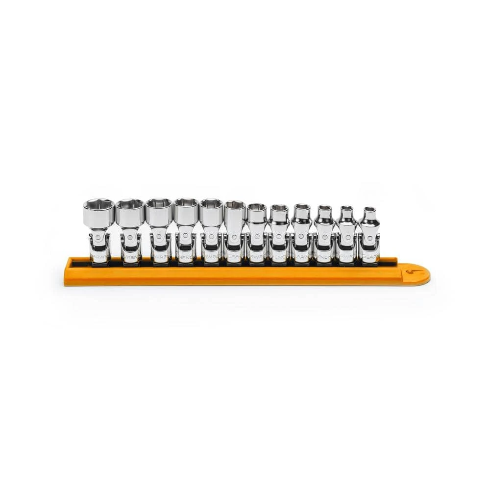 The GEARWRENCH 12-Piece 1/4 in. Drive Metric Flex Socket Set comes with a socket rail for easy tool storage. The wrenches feature a full chrome polish finish for durability and corrosion resistance. Flex-joint allows for better access to hard to reach fasteners.