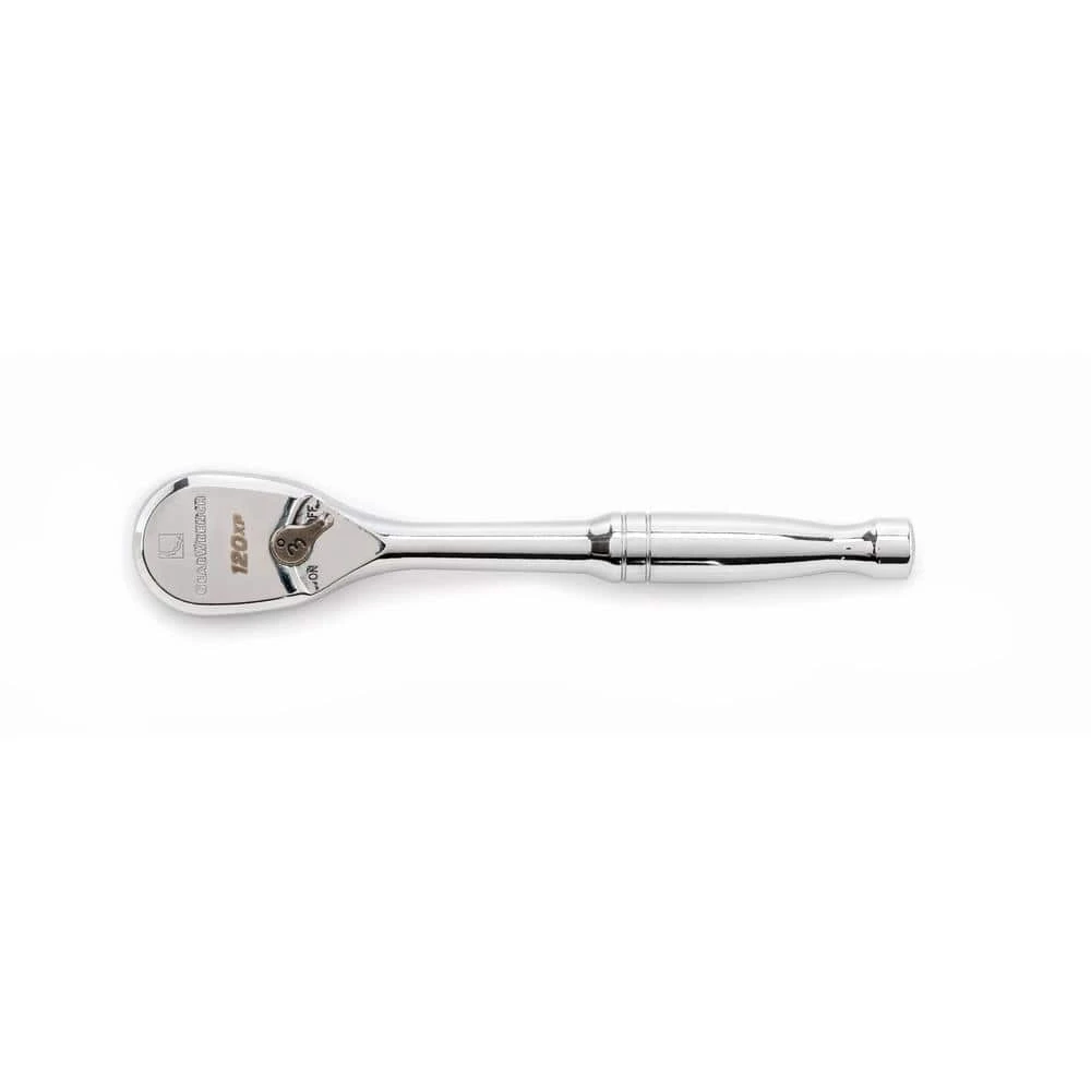 - 120 position, 3 ratcheting arc ratchet with teardrop low profile head and flush mounted on/off switch for improved access