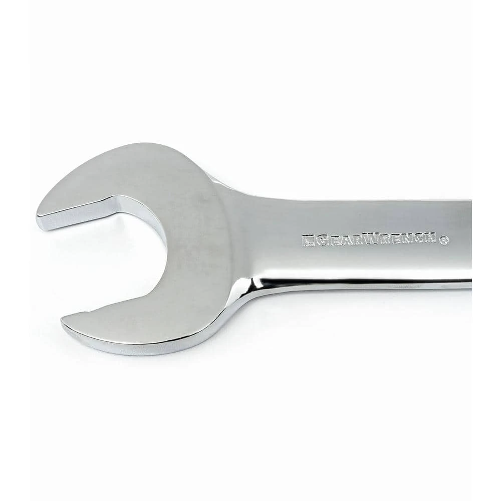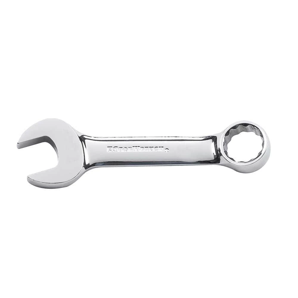The GEARWRENCH 15 mm Combination Stubby Wrench features a full chrome polish finish for durability and corrosion resistance. Ratcheting box end increases productivity while reducing hand fatigue. The box end utilizes Surface Drive technology which provides off-corner loading for better grip and reduced fastener rounding.
