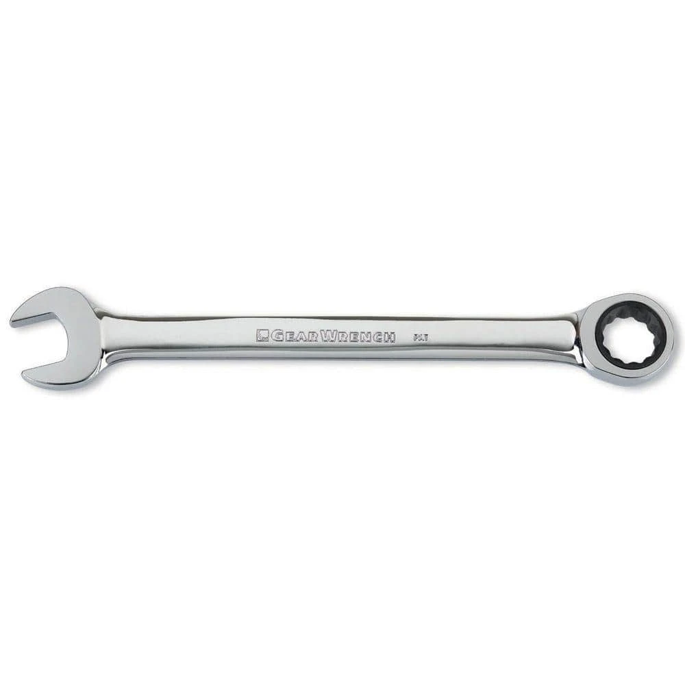 The GEARWRENCH 16mm Combination Ratcheting Wrench features a full chrome polish finish for durability and corrosion resistance. Ratcheting box end increases productivity while reducing hand fatigue. The box end utilizes Surface Drive technology which provides off-corner loading for better grip and reduced fastener rounding.