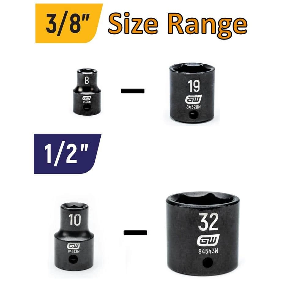 GEARWRENCH offers a wide range of impact sockets in open stock and sets that are designed to deliver the performance and strength that the professional users require. They are made from chrome molybdenum alloy steel for exceptional strength and durability. Sockets have a manganese phosphate coating to resist corrosion. The sockets also feature highly visible laser etched markings and a-secondary size hard stamping. The sockets feature off-corner loading to reduce fastener rounding. The GEARWRENCH impact product family will allow the professional user to FORGE AHEAD.