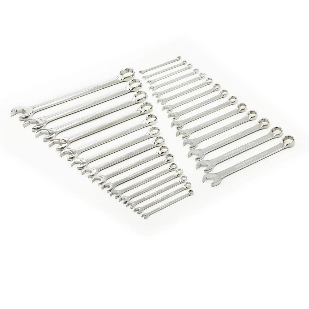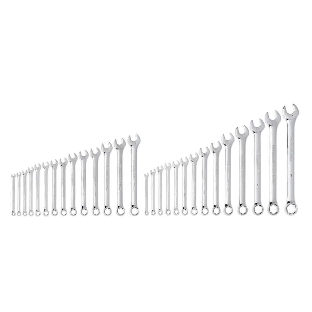 The GEARWRENCH 28-piece combination wrench set comes with 14 SAE and 14 Metric wrenches. The set provides with nearly every size needed to complete your DIY or Automotive project. Surface Drive Plus on open end provides you with a stronger grip and up to 25% more torque.