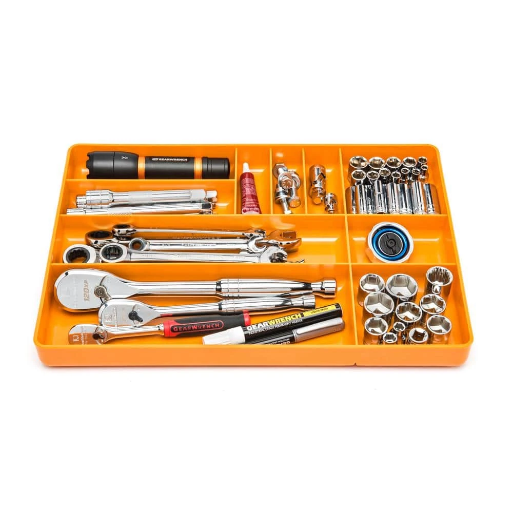 The GEARWRENCH Universal tool tray helps keep your tool box organized. The tray is small and compact which allows it to fit most tool drawers. The 10 slots provide you with the flexibility of organizing wrenches, adapters, hardware and more.
