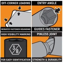 GEARWRENCH 3/8 in. Drive X-Core Pinless Universal Joint Impact Extension Set (3-Piece)